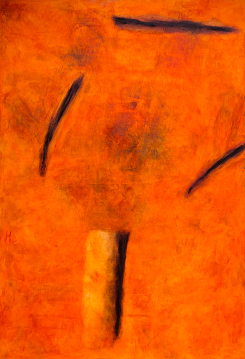 Ich arbeite gern mit Öl auf Sperrholz, benutze selten Pinsel, überwiegend meine Finger oder Hände. Die Farben sind natürlich zentral. Ich mag sie fast alle. Bis Farbe und Form stimmig sind, dauert's.