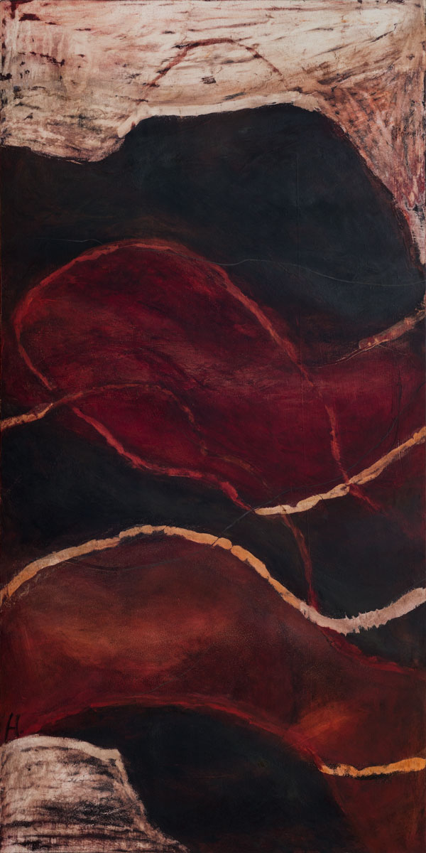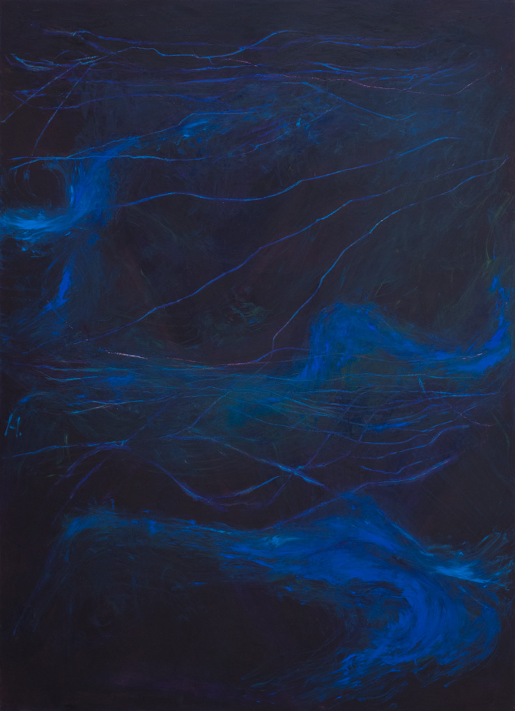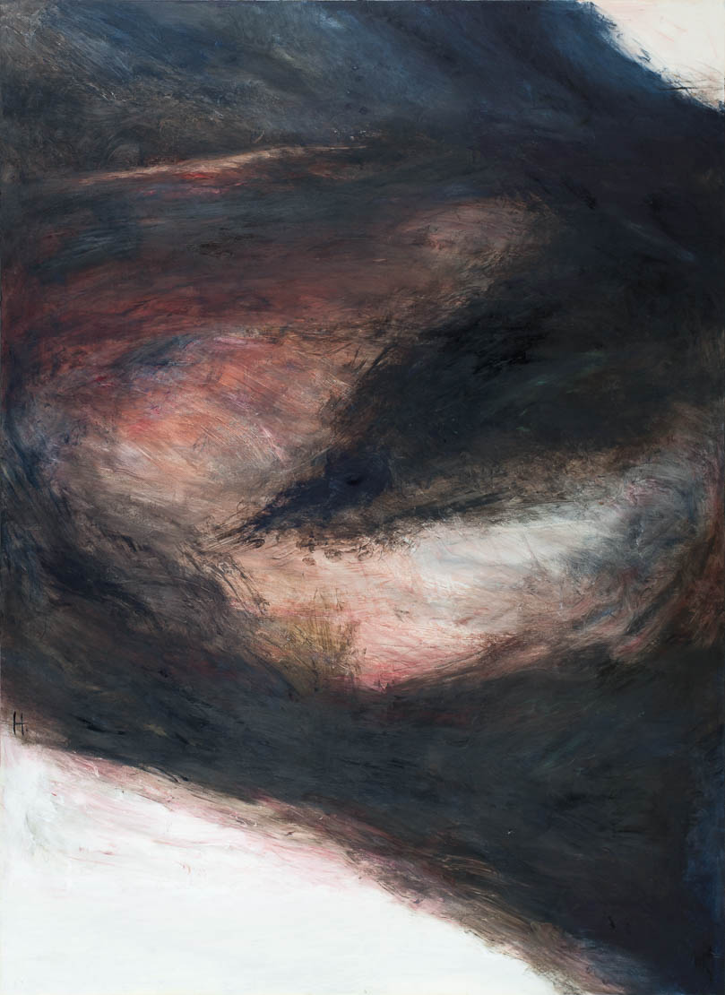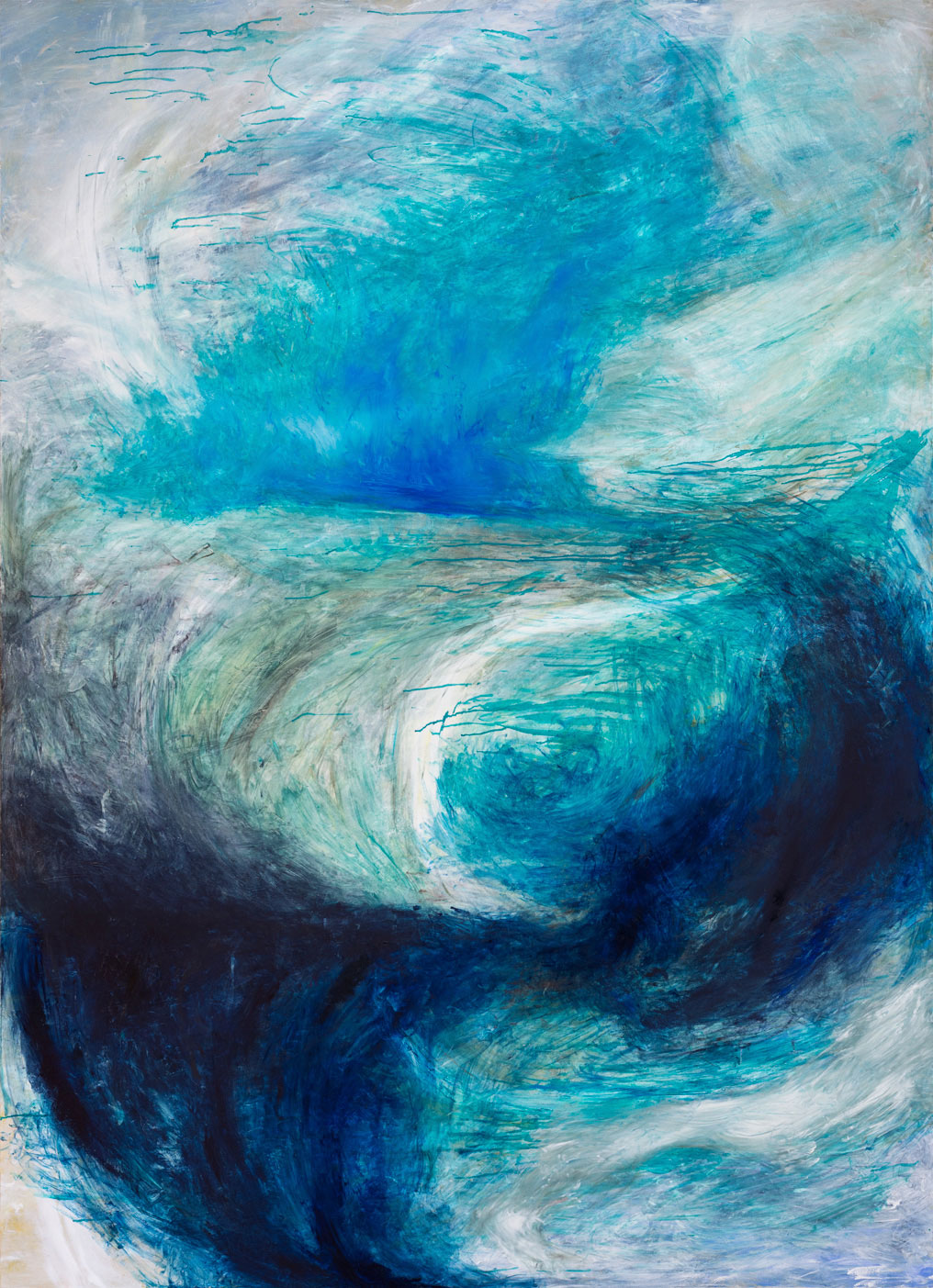 Ich mag große Formate. Es entstehen Arbeiten, die an Landschaften erinnern, aber auch abstrakte Bilder.