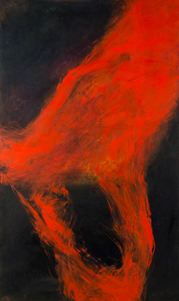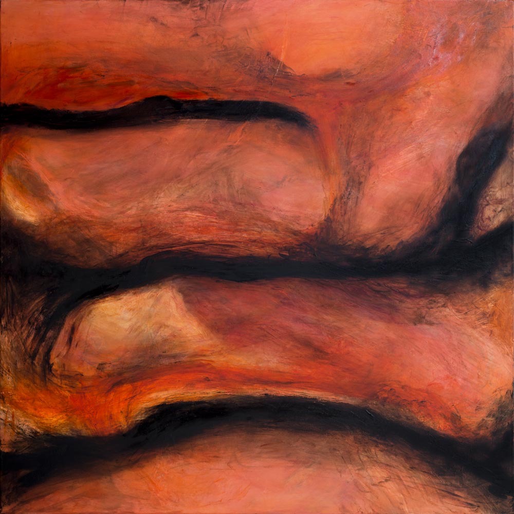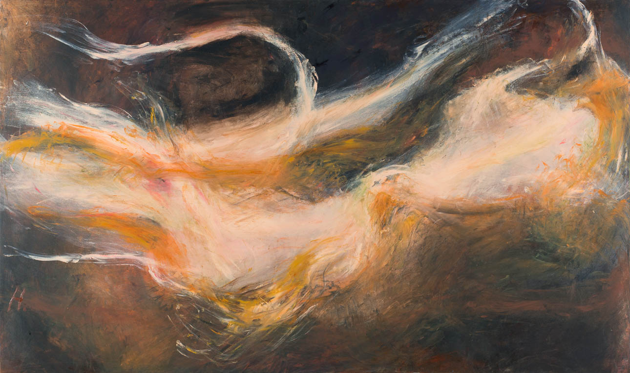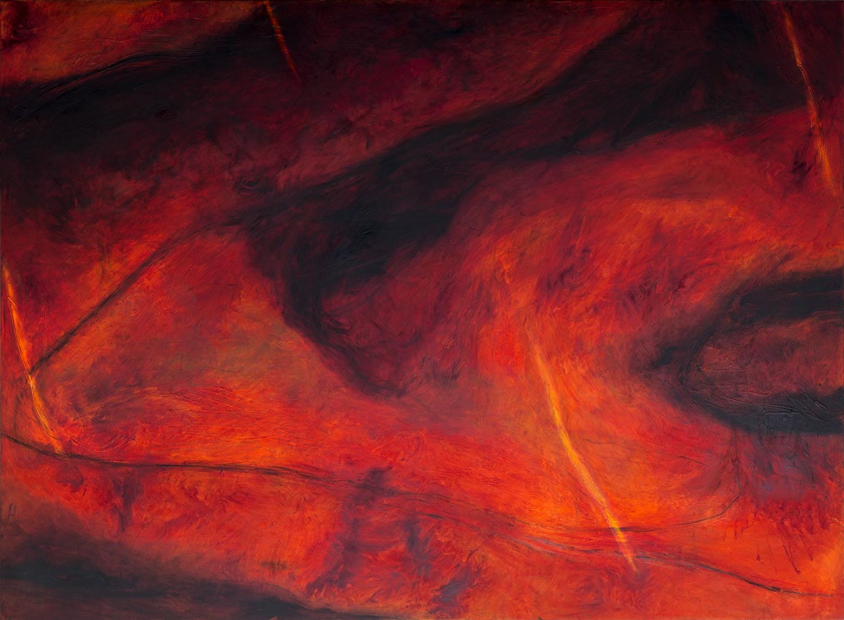 Ich mag große Formate. Es entstehen Arbeiten, die an Landschaften erinnern, aber auch abstrakte Bilder.