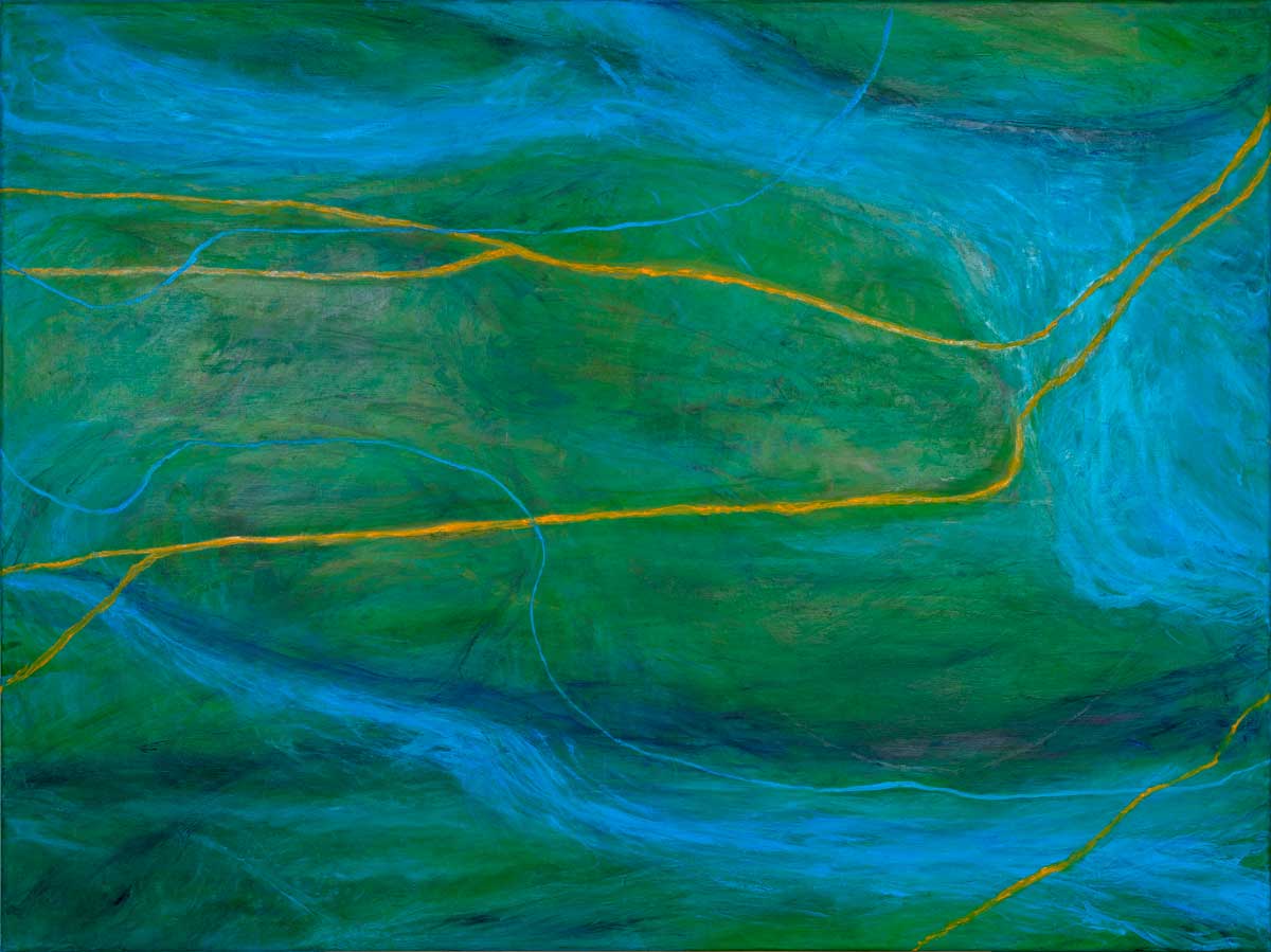 Bild oben: „Gelb, Grün, Blau“, Öl auf Leinwand, 120 x 160 cm, 2022