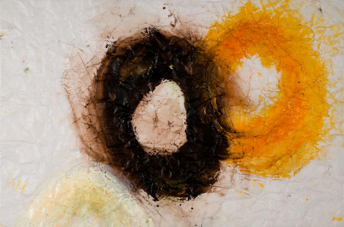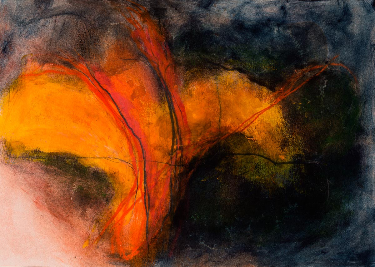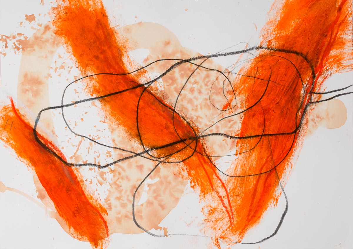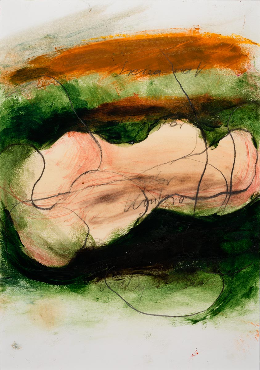 Sudelblätter zeigen in kleinen, recht farbigen Formaten klare, aber auch viele chaotische Strukturen, die ich mir auch als große Bilder vorstellen könnte. Ich trage die Farben meist mit bloßen Fingern auf, mische, wische, setze auch Stifte ein …