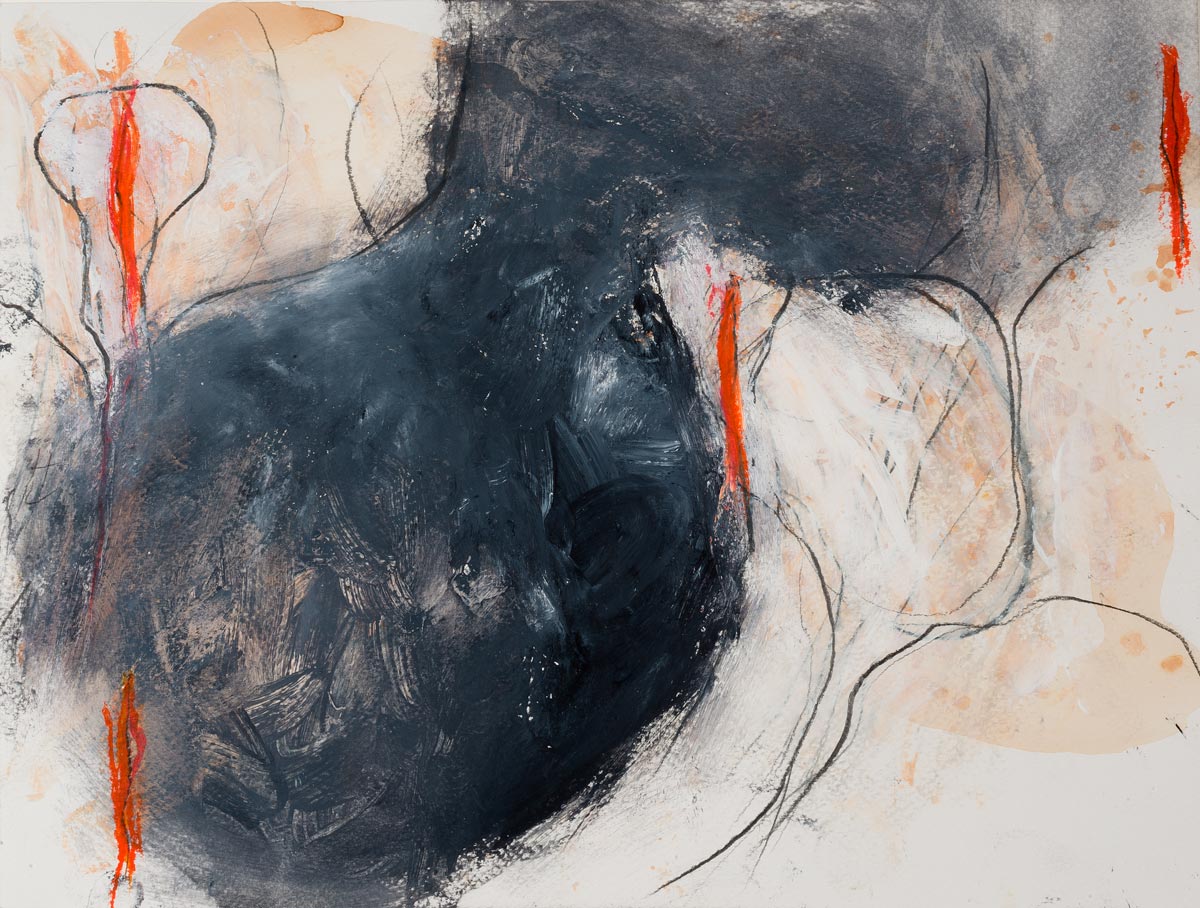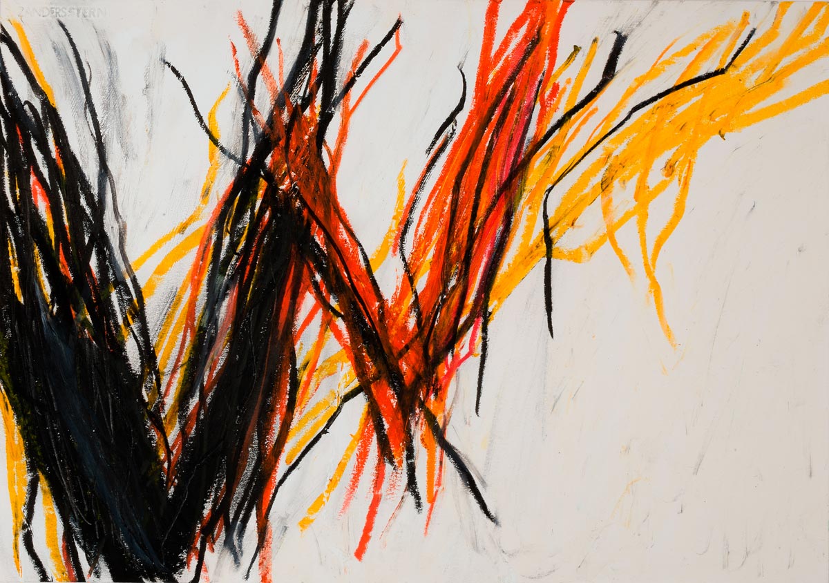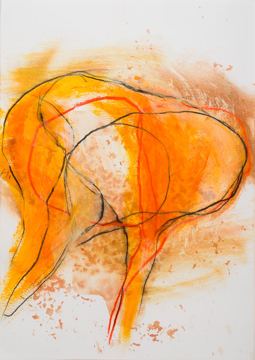 Sudelblätter zeigen in kleinen, recht farbigen Formaten klare, aber auch viele chaotische Strukturen, die ich mir auch als große Bilder vorstellen könnte. Ich trage die Farben meist mit bloßen Fingern auf, mische, wische, setze auch Stifte ein …